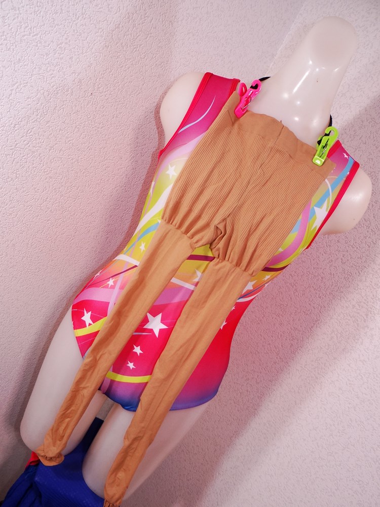(使用者年齢:21歳-女子大生:大学の体操部でご使用の競技用レオタードとスポーツストッキングの使用済み品です。)