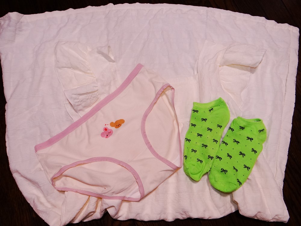 (使用者年齢:17歳-高校生:コットン素材のティーンネグリジェとティーンショーツにソックス贅沢な使用済み品です。)