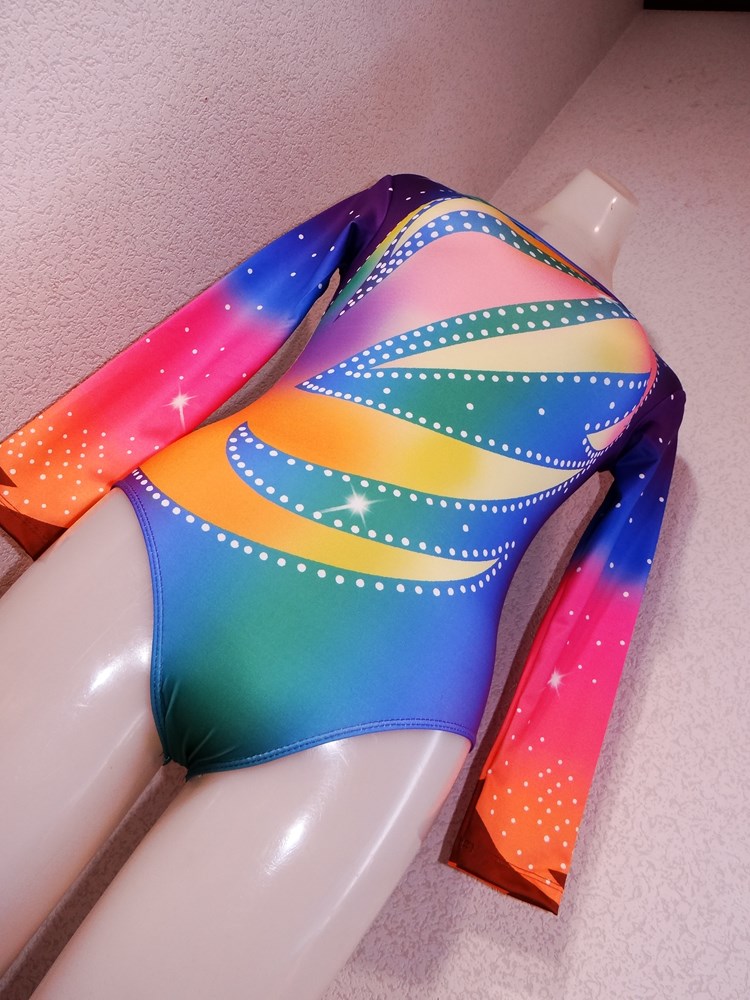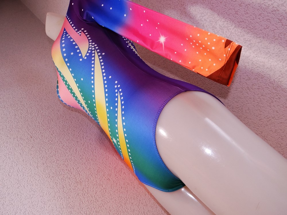 (使用者年齢:22歳-女子大生:新体操部でご使用の高価で豪華な1ランク上の競技用レオタードの使用済み品です。)