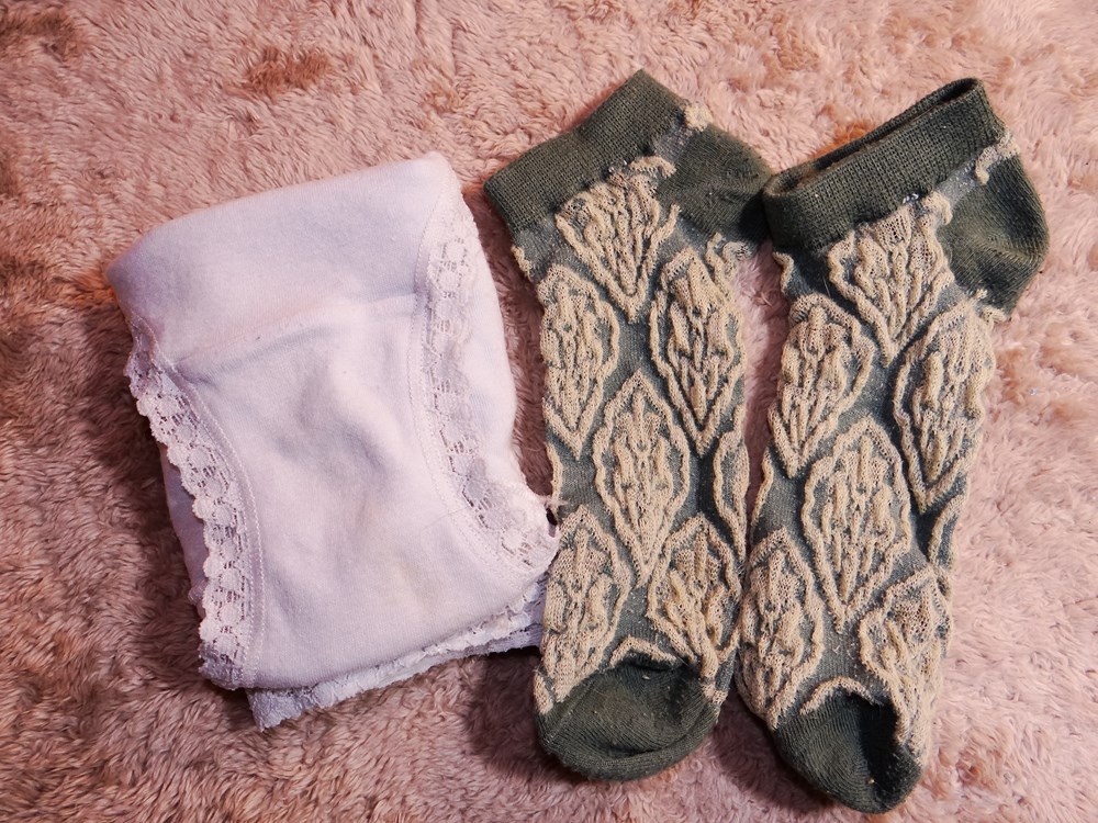 (使用者年齢:18歳-高校生:純白通学ショーツです。小柄の小さめ通学ショーツとソックスの使用済み品です。)