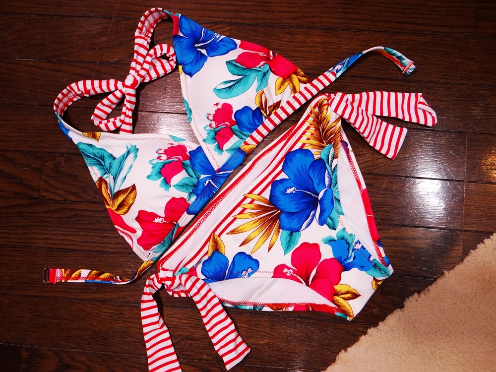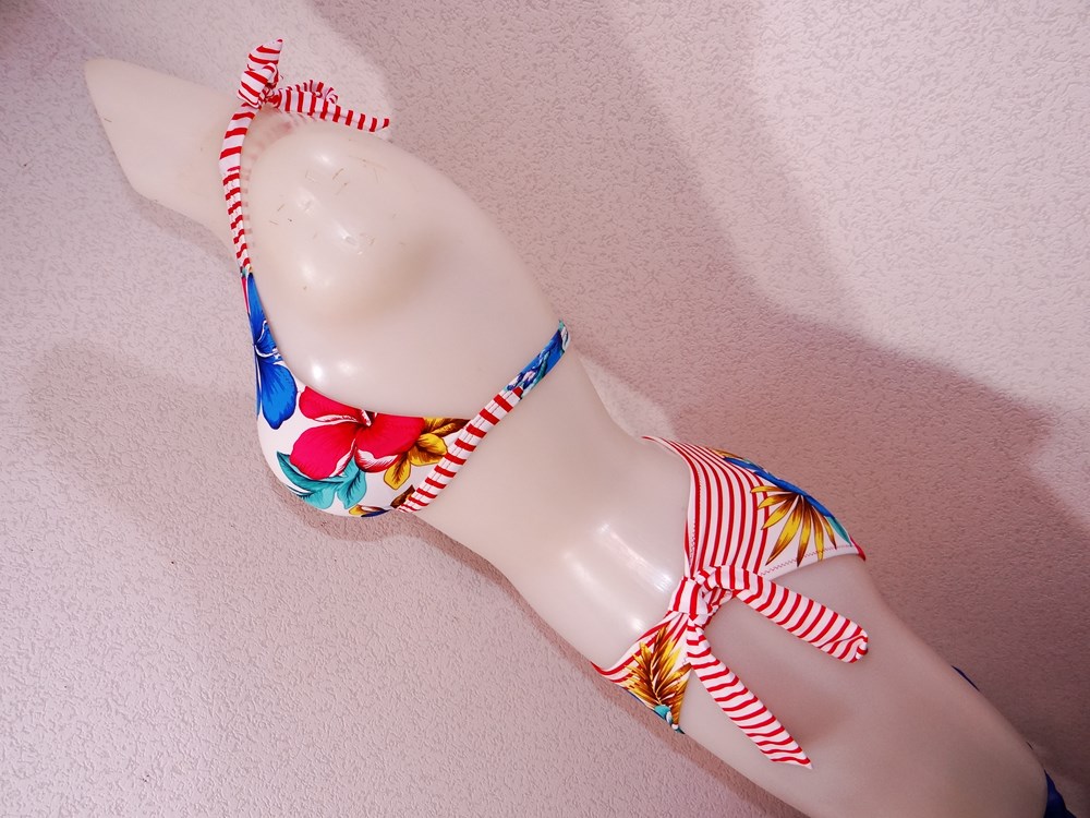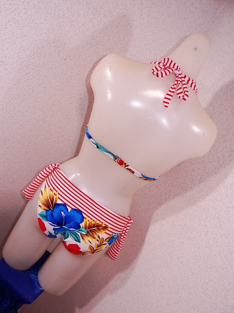 (使用者年齢:21歳-女子大生:可愛いワンピースドレスと今時のビキニとハンカチとショートストッキングとパンストの使用済み品セットです。)