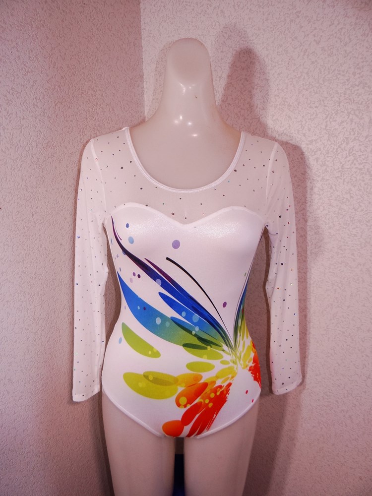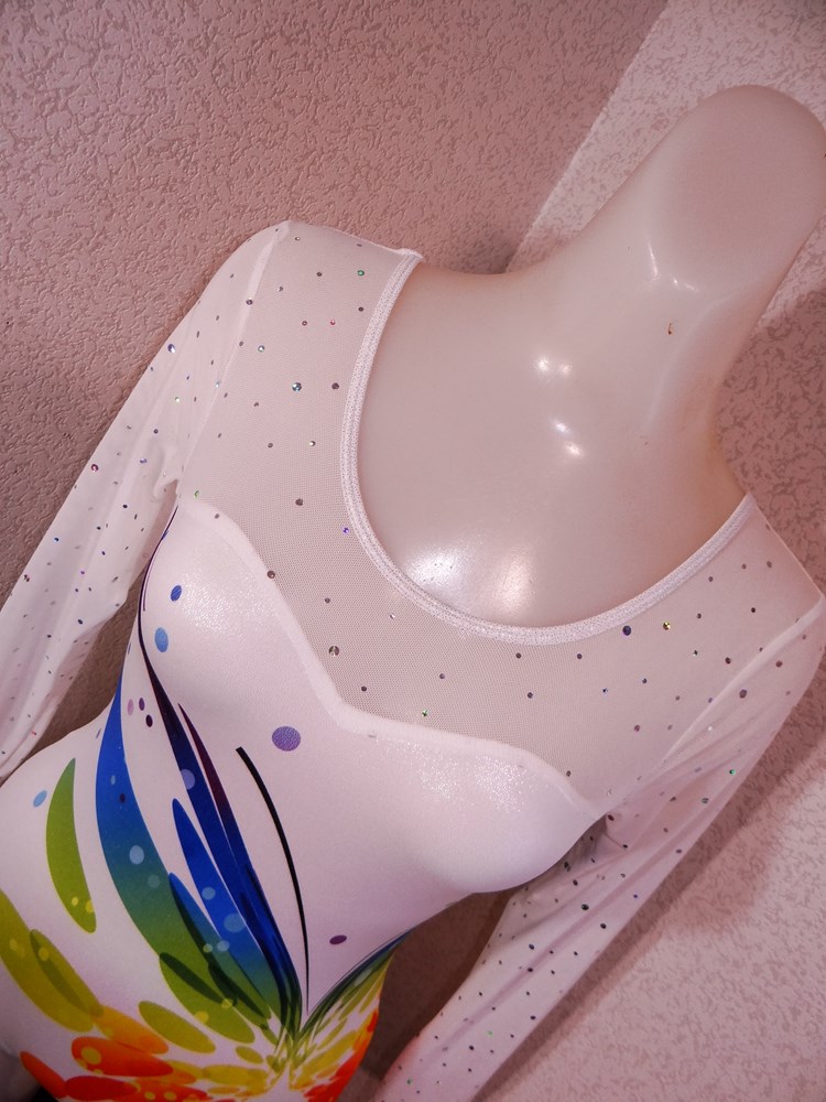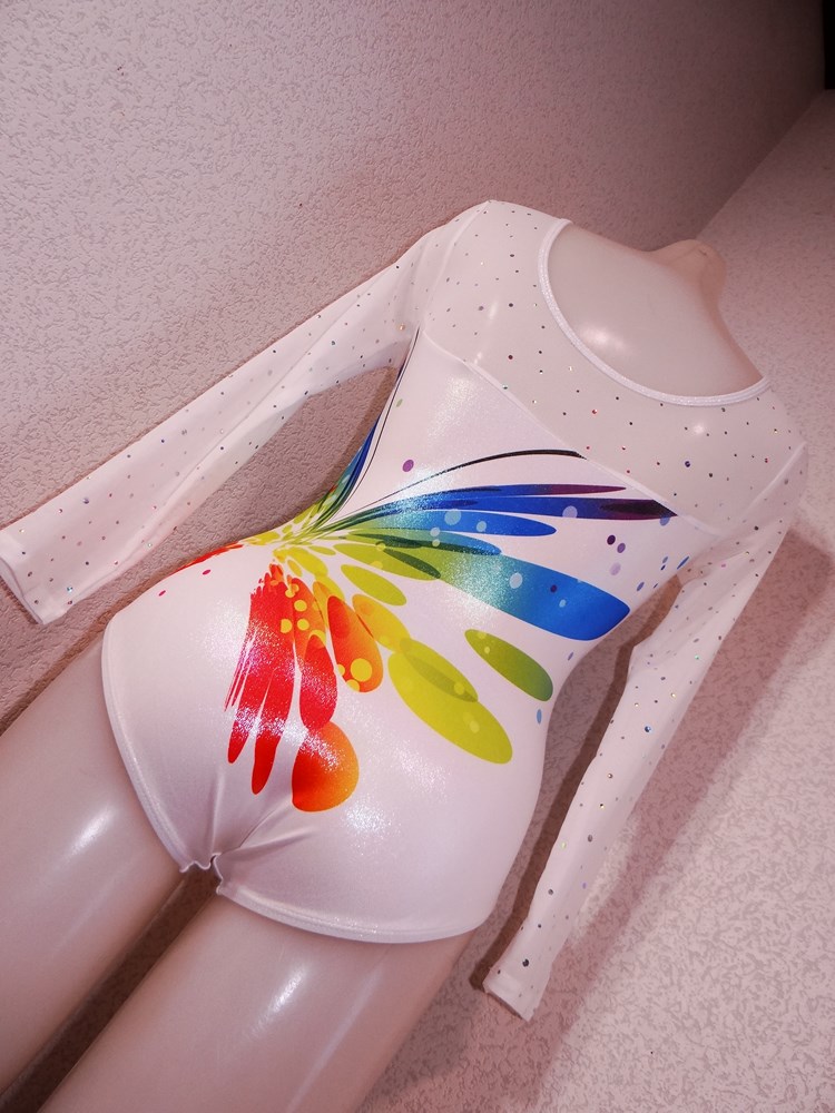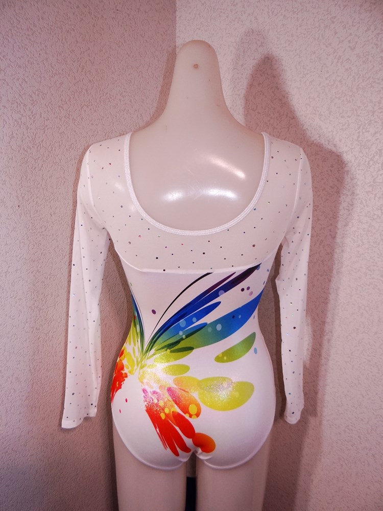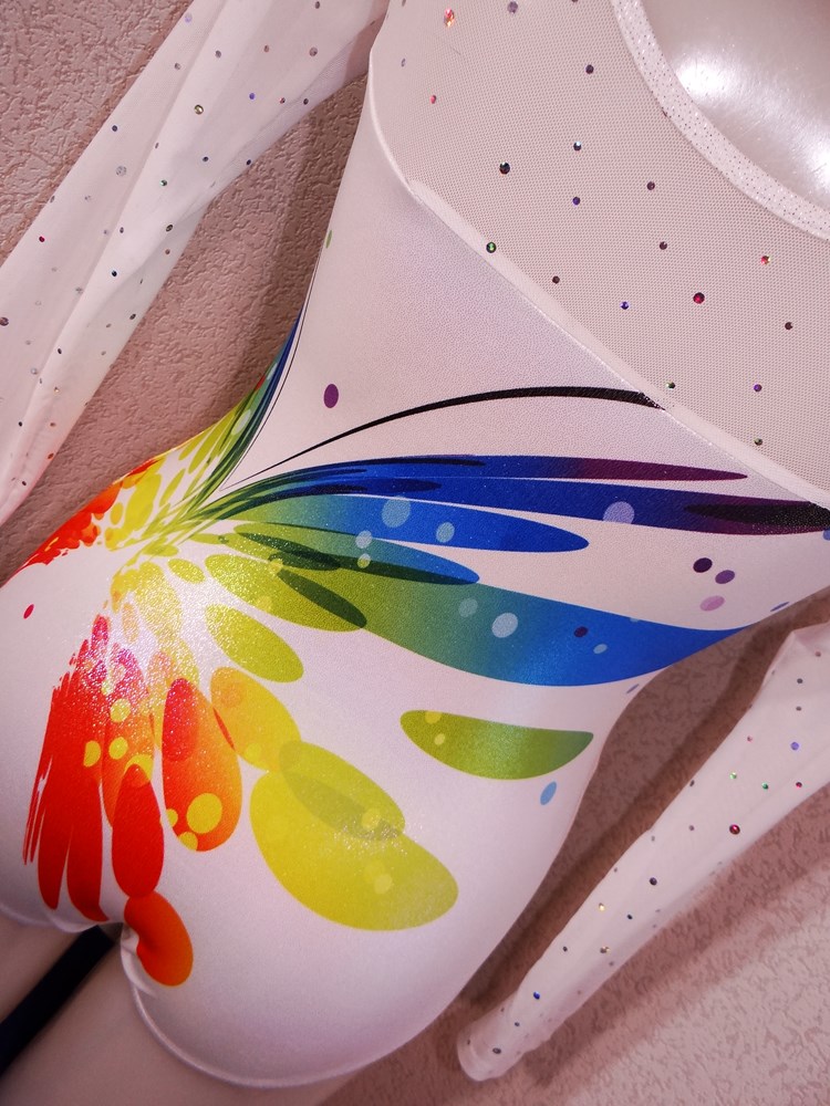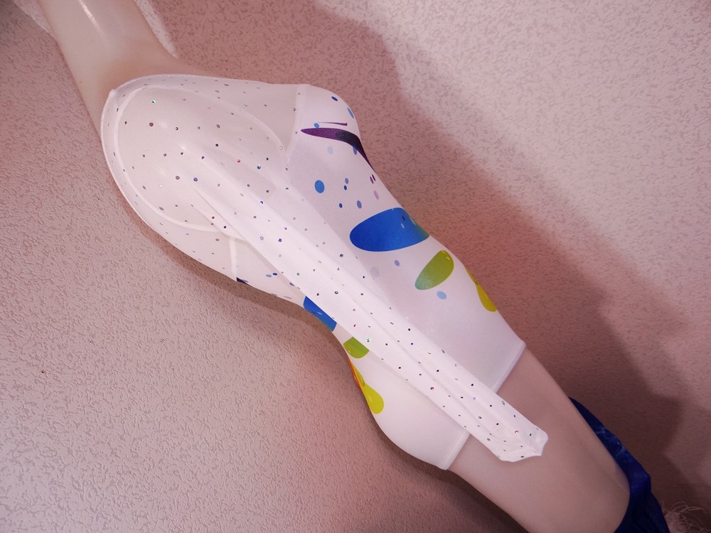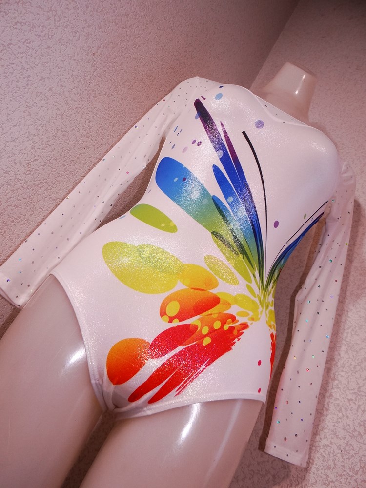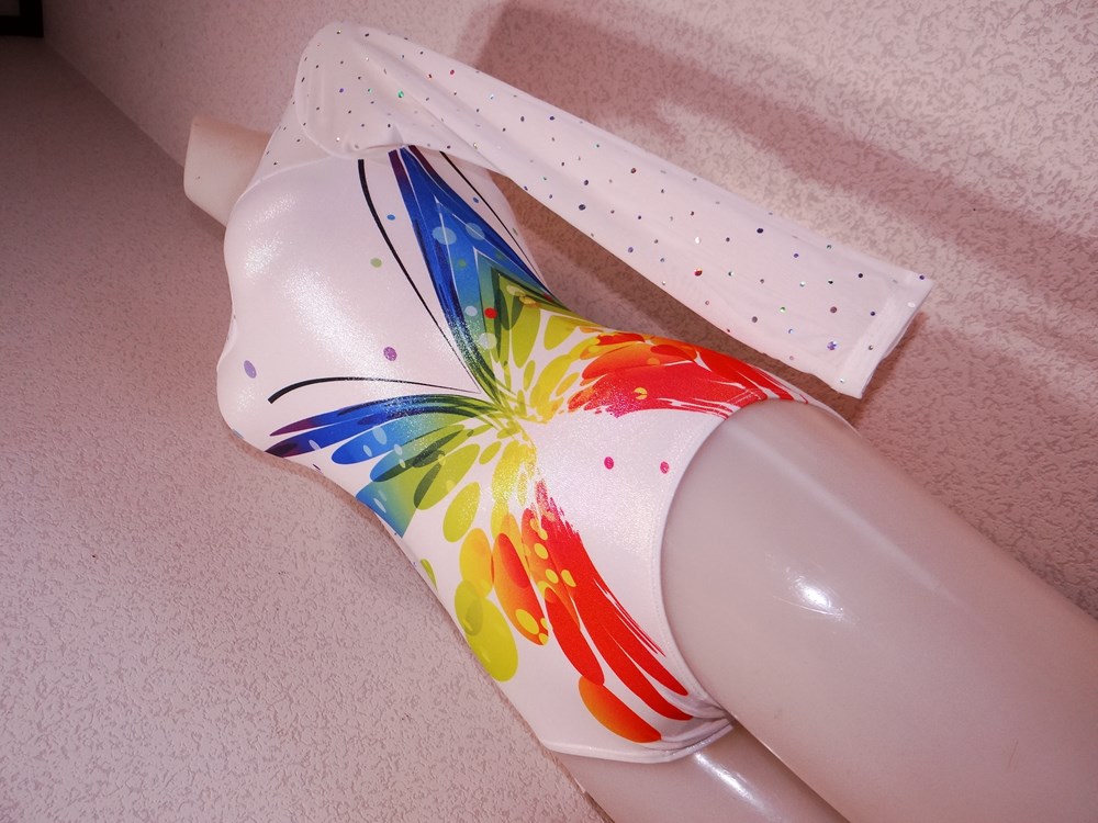 (使用者年齢:22歳-大学の新体操部でご使用の光沢系1ランク上の光沢系、競技用レオタードの使用済み品です。)