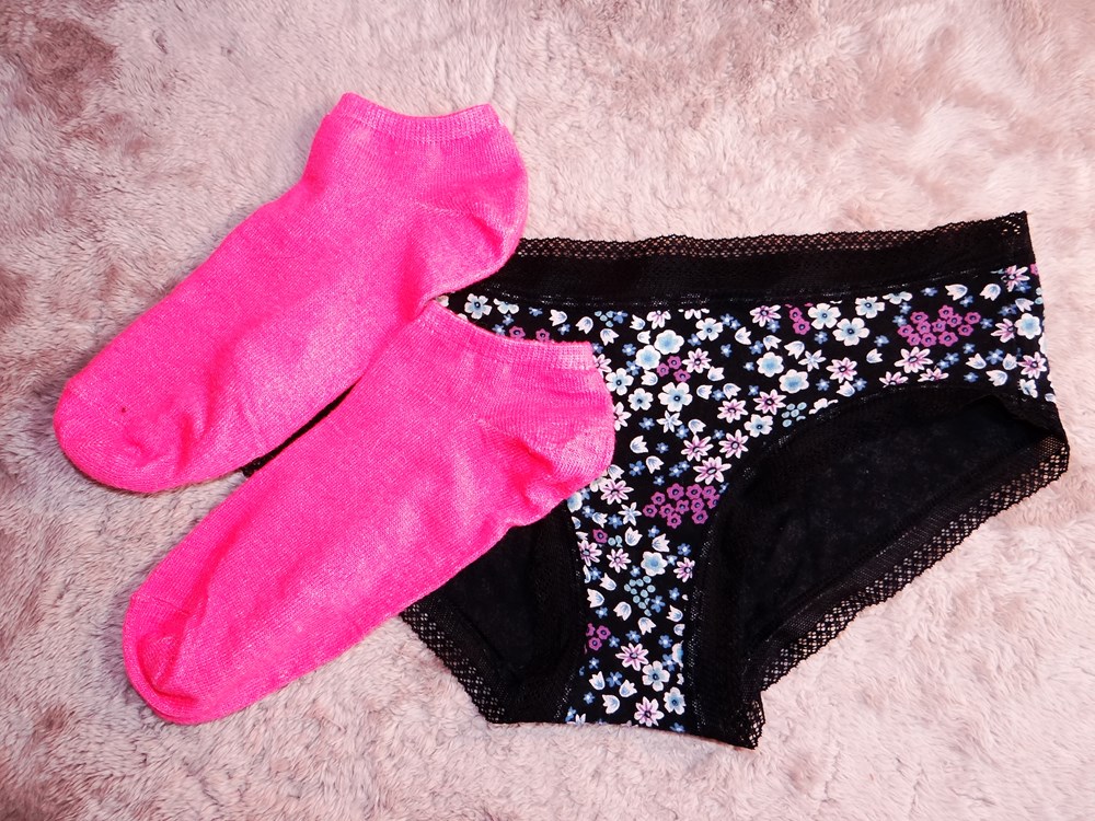 (使用者年齢:18歳-使用度ランクは【D】の長年使用済み下着と「カジュアルソックスのセットです。)