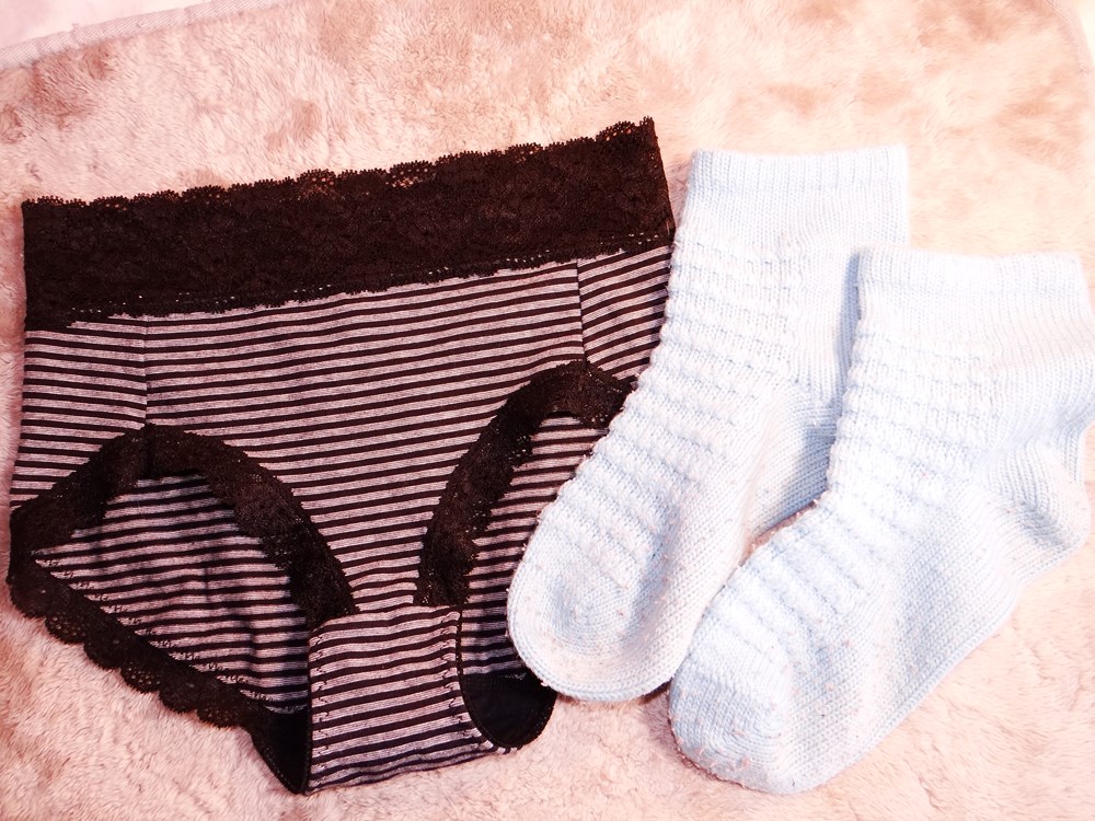 (使用者年齢:20歳-女子大生:可愛い定番のショーツとソックスの使用済み品です。)
