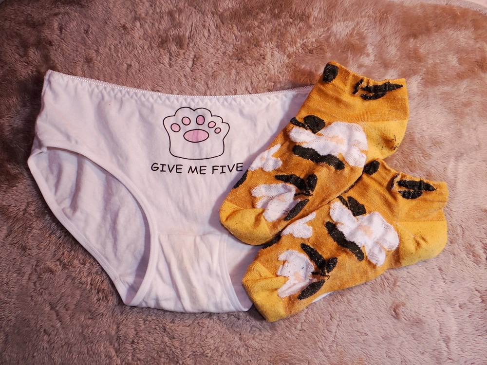 (使用者年齢:16歳-高校生:使用度ランクは【E+】の長年使用済み下着です。可愛いソックス付き)
