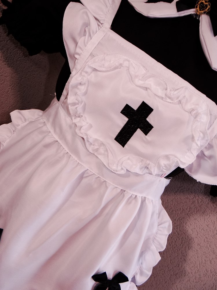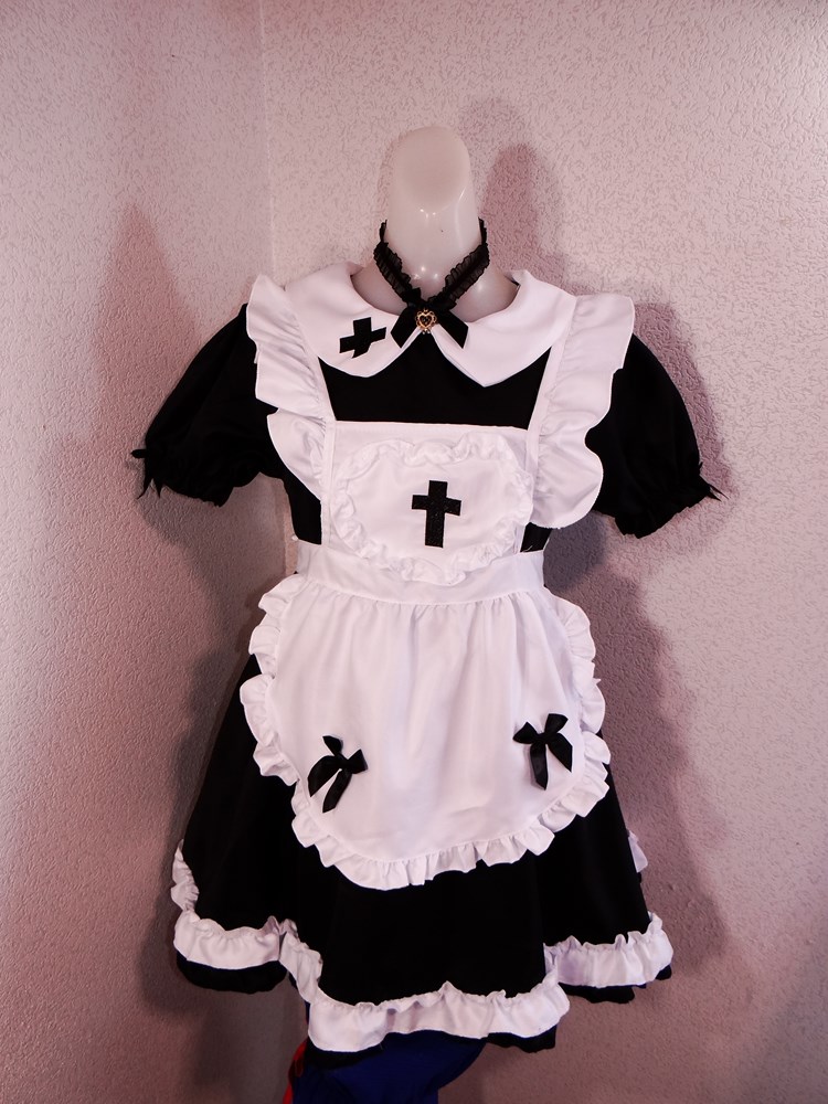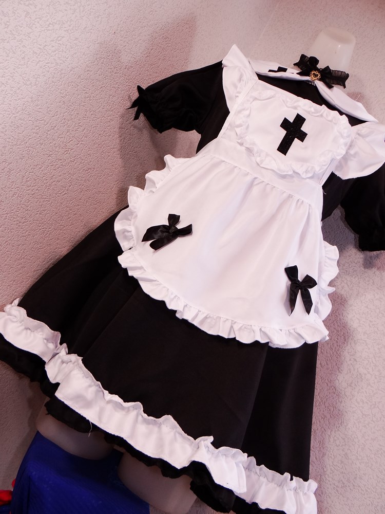 (使用者年齢:20歳-可愛い女子大生モデルがゴスロリイベントでご使用されたボリューム満点のメイドドレスフルセットの使用済み品です。)