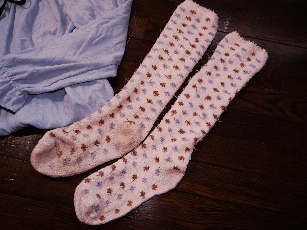 (使用者年齢:21歳-女子大生:貴重で可愛い長袖のネグリジェとの冬用パジャマソックスの使用済み品です。)