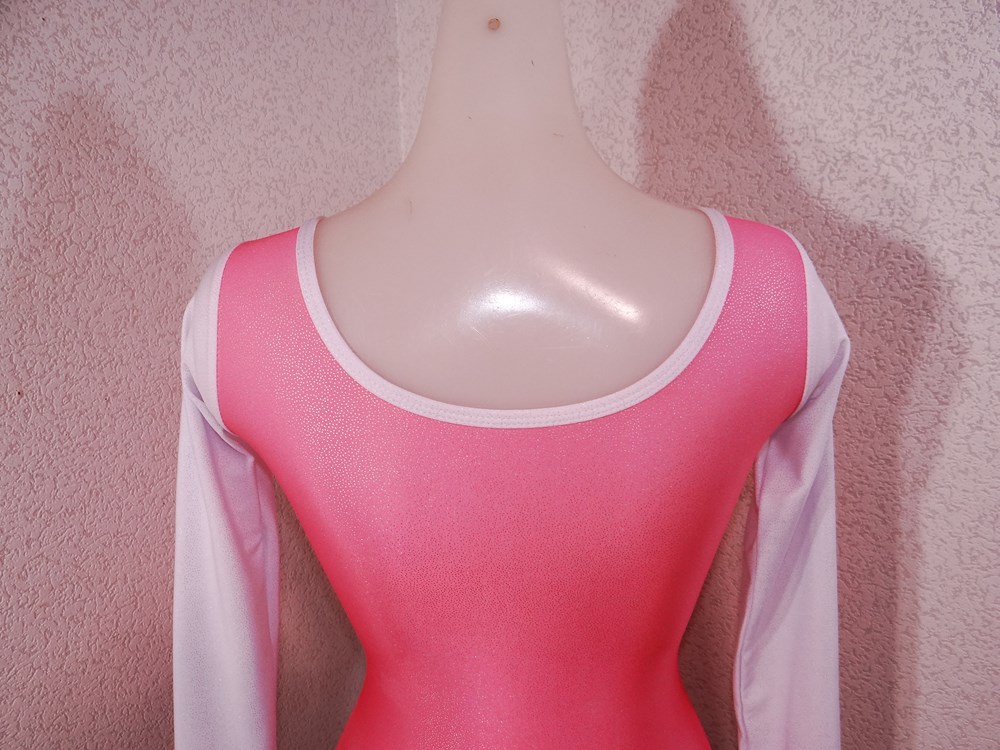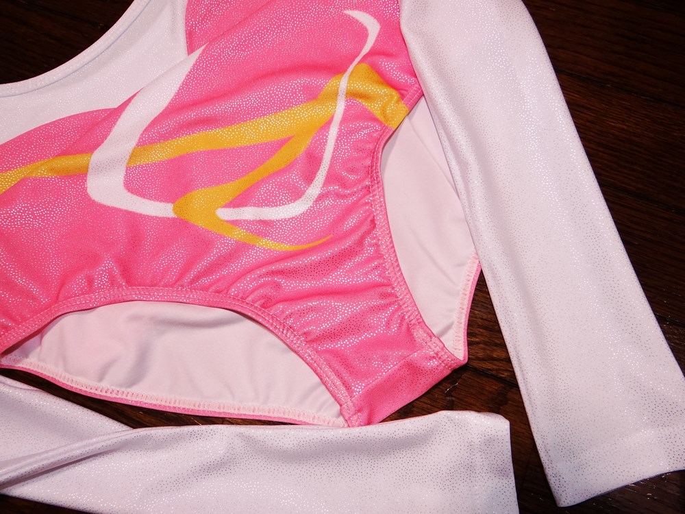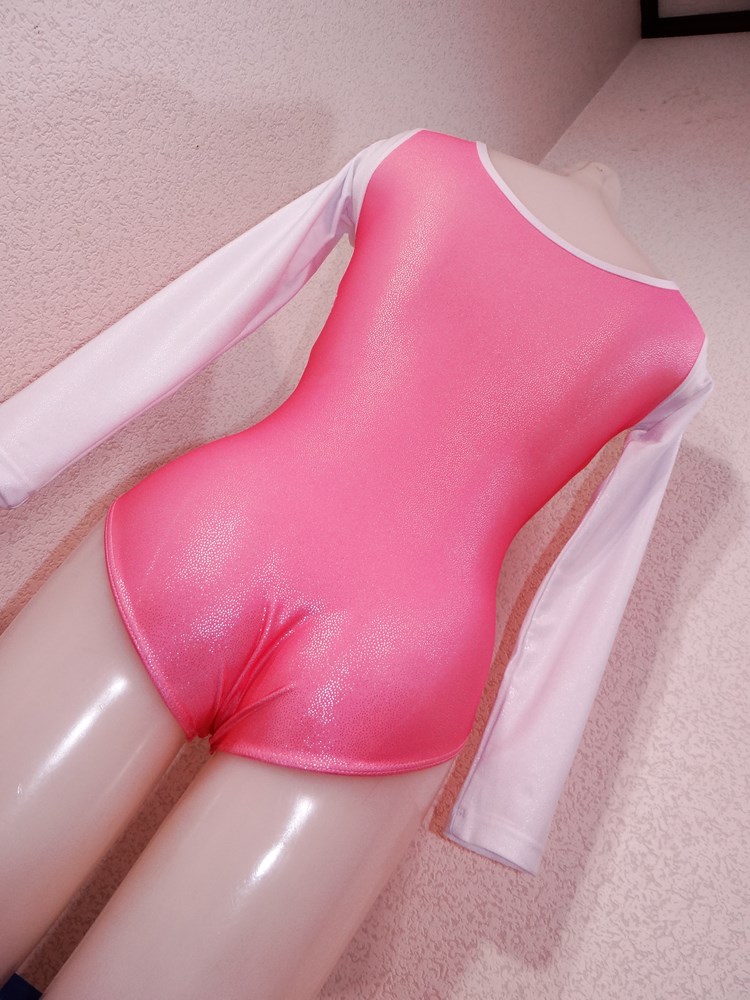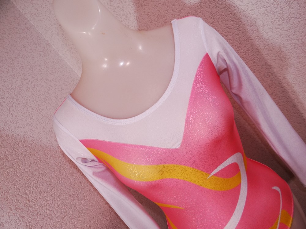 (使用者年齢:18歳-高校生:新体操部でご使用の光沢系で1ランク上の競技用レオタードの使用済み品です。)