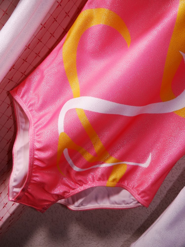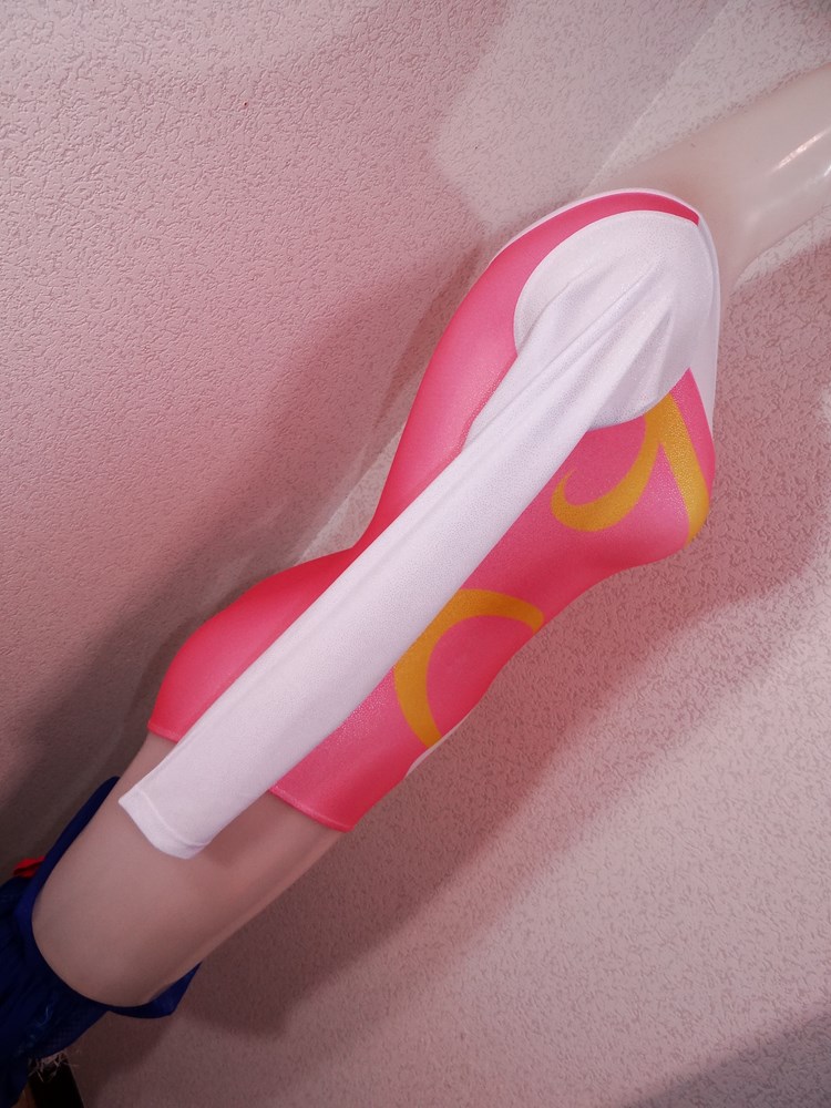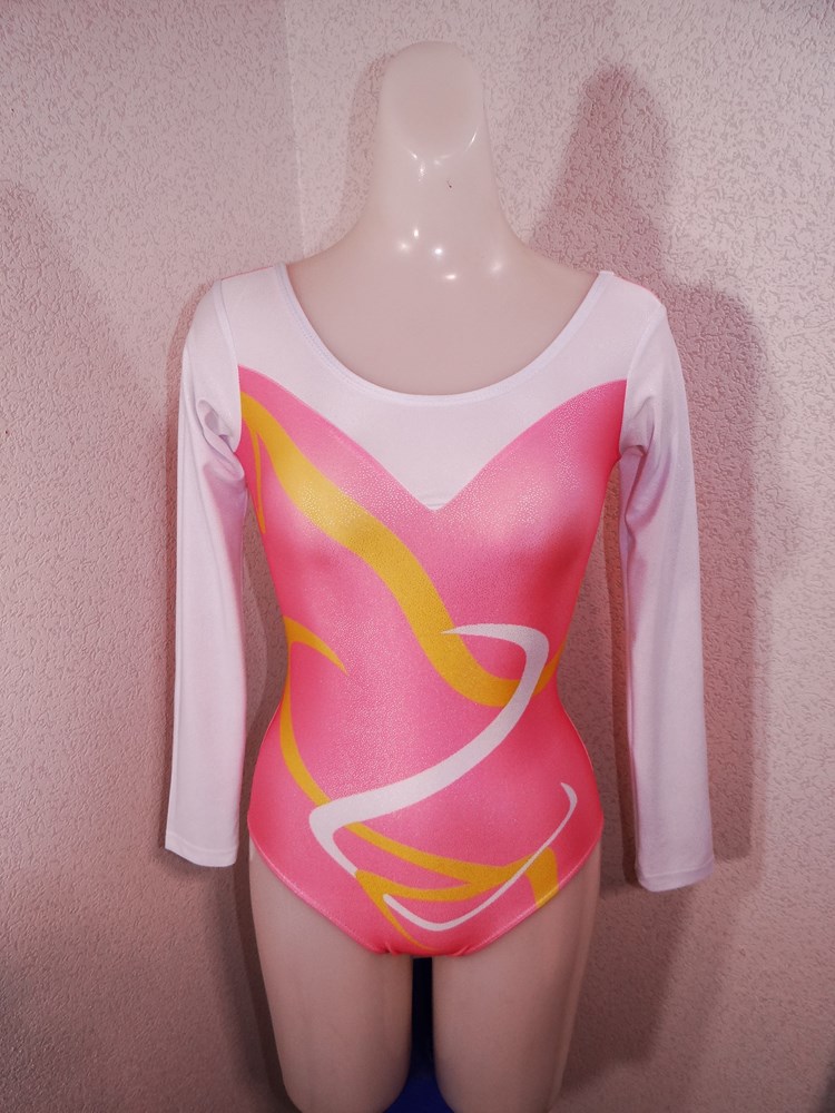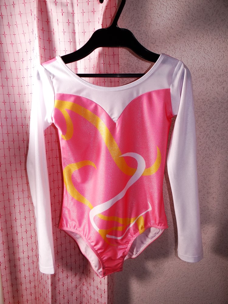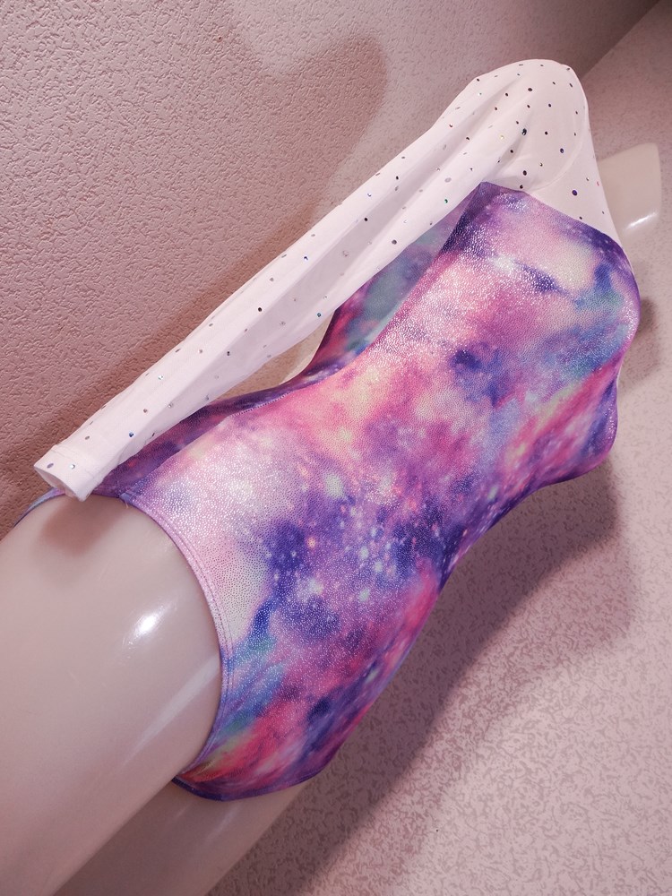 (使用者年齢:18歳-高校生:新体操部でご使用の光沢系で1ランク上の競技用レオタードの使用済み品です。)