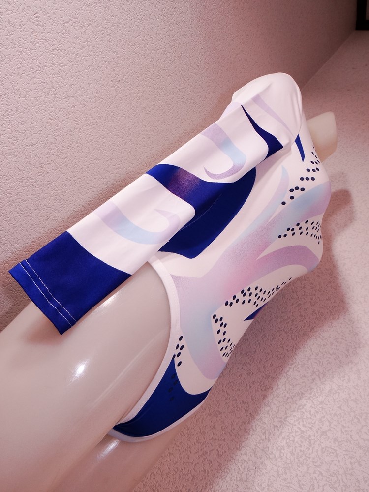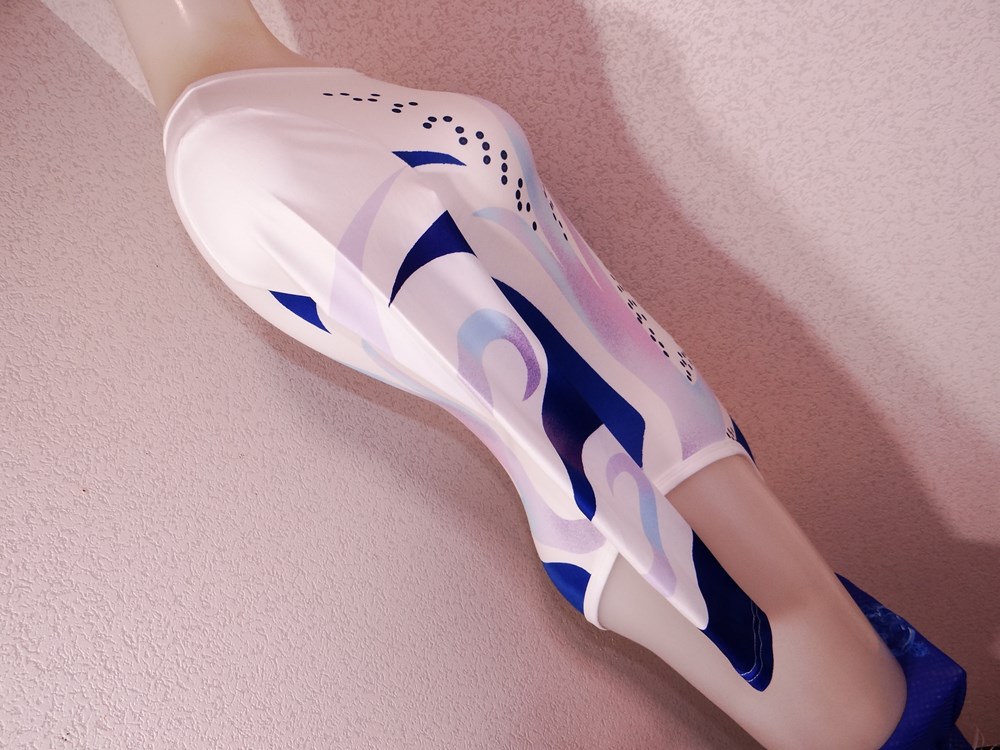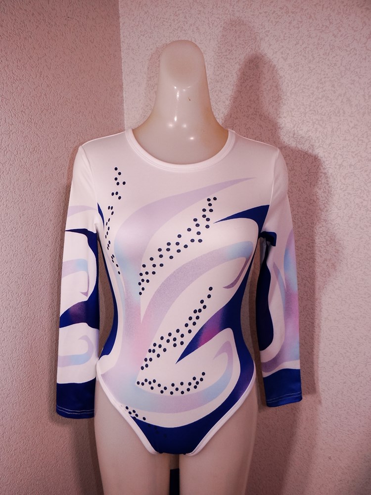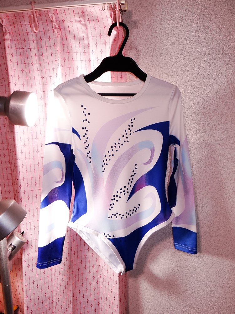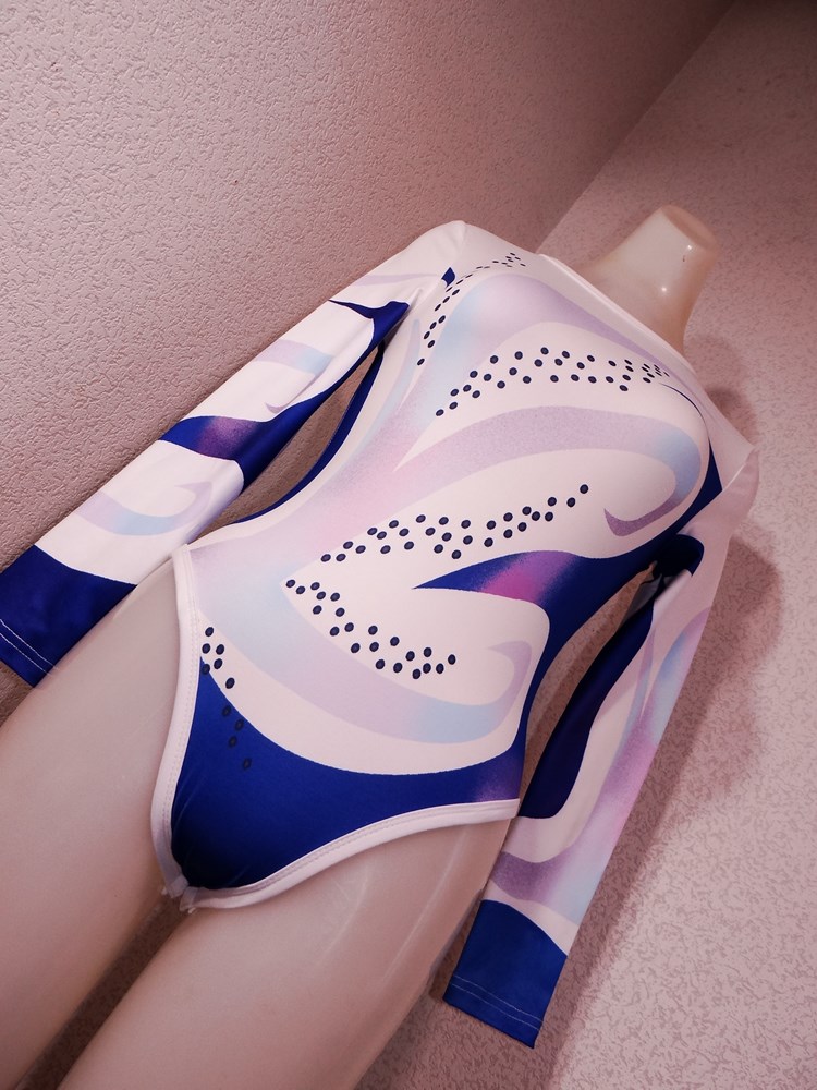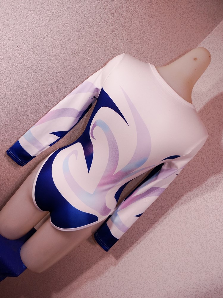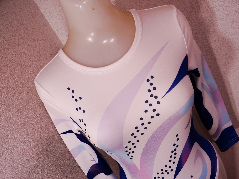 (使用者年齢:22歳-女子大生:新体操部でご使用の豪華でデザインが凝った競技用レオタードの使用済み品です。)
