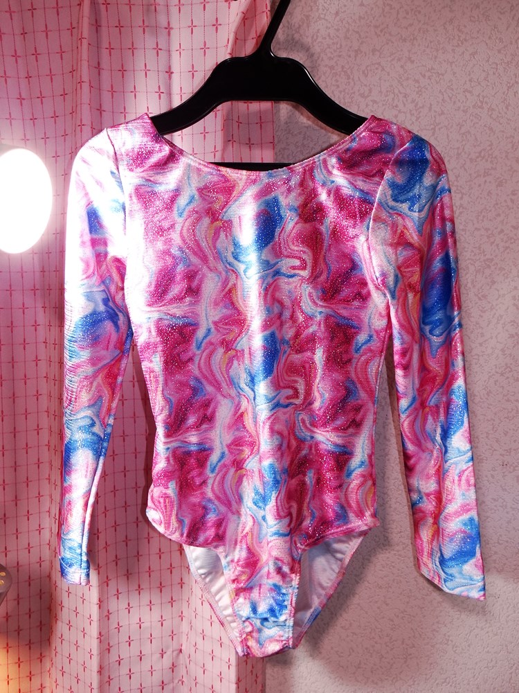 (使用者年齢:22歳-女子大生:新体操部でご使用の競技用レオタードです。豪華で高価な繊細素材で2ランク上の高品質レオタードの使用済み品です。)