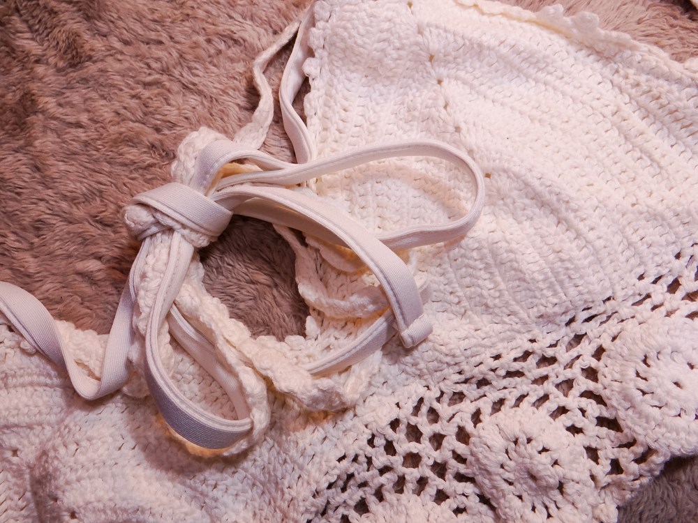 (使用者年齢:21歳-女子大生:可愛いワンピースドレスと今時のビキニとハンカチとショートストッキングとパンストの使用済み品セットです。)