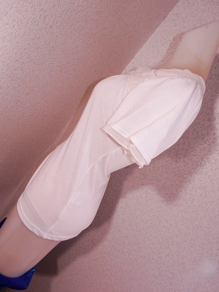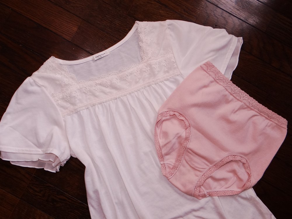 (リアルランジェリー:純白パジャマTシャツとパジャマショーツ:使用者年齢帯:20代前半女子大ガールズが日常的に使い込まれた再生品です。)