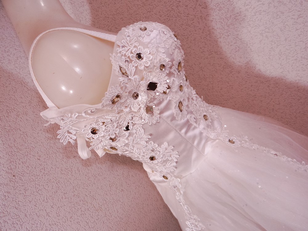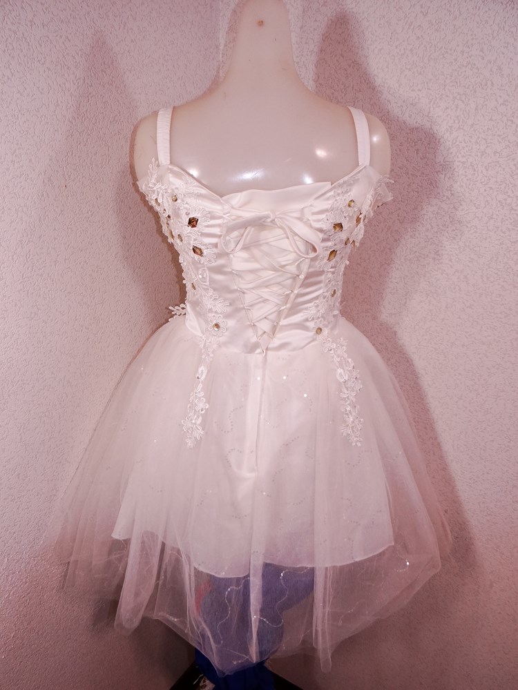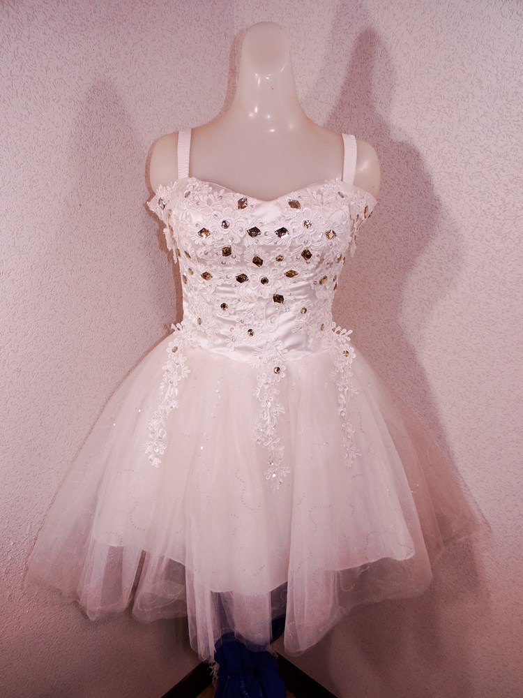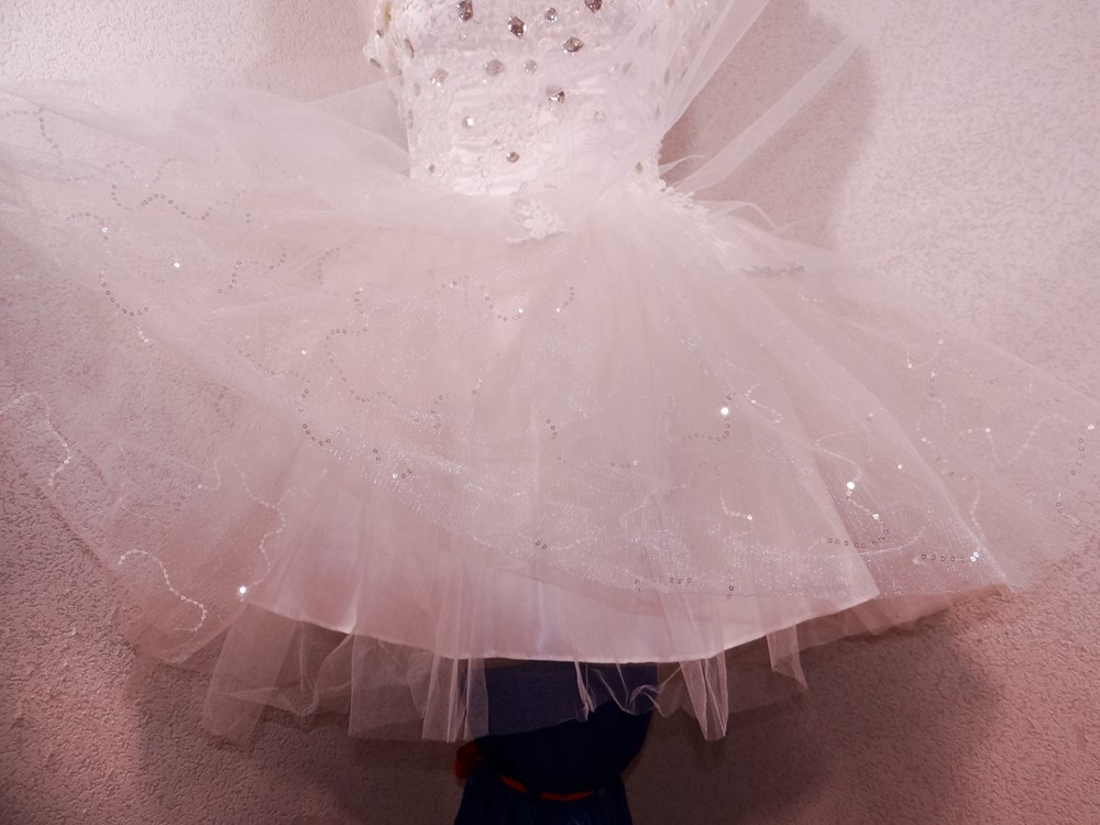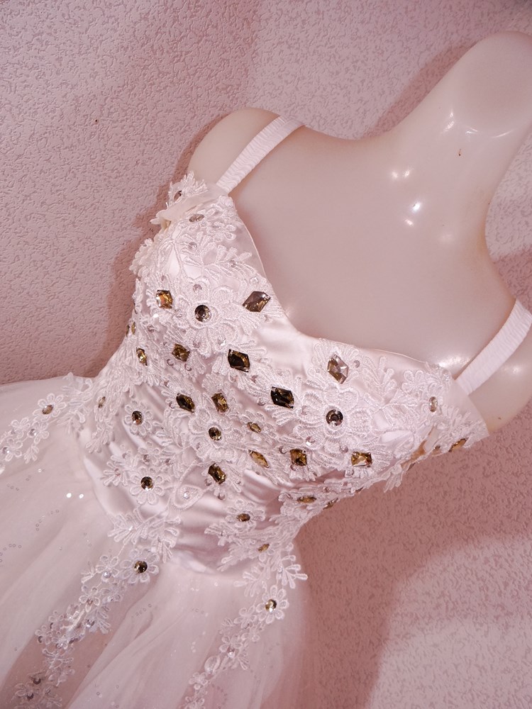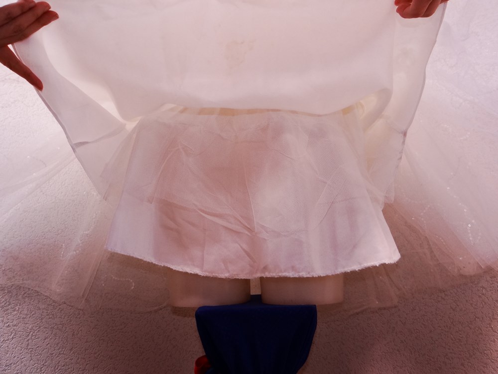 (オーダーメイド12万円ドレス:ボリュームの有るスカート部は5重層:アンダー下着と白パンストセット:使用者年齢帯:20代前半:関西のアイドル活動でご使用された再生品です。)