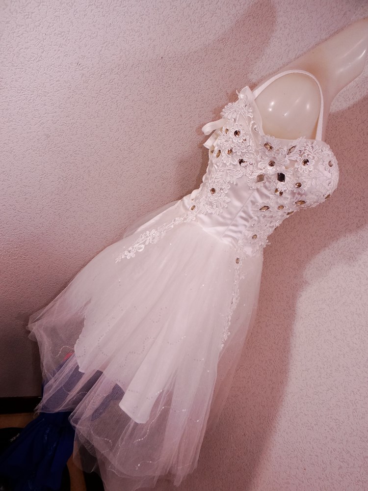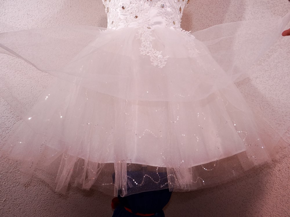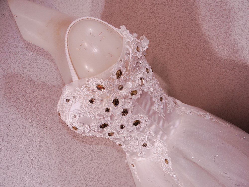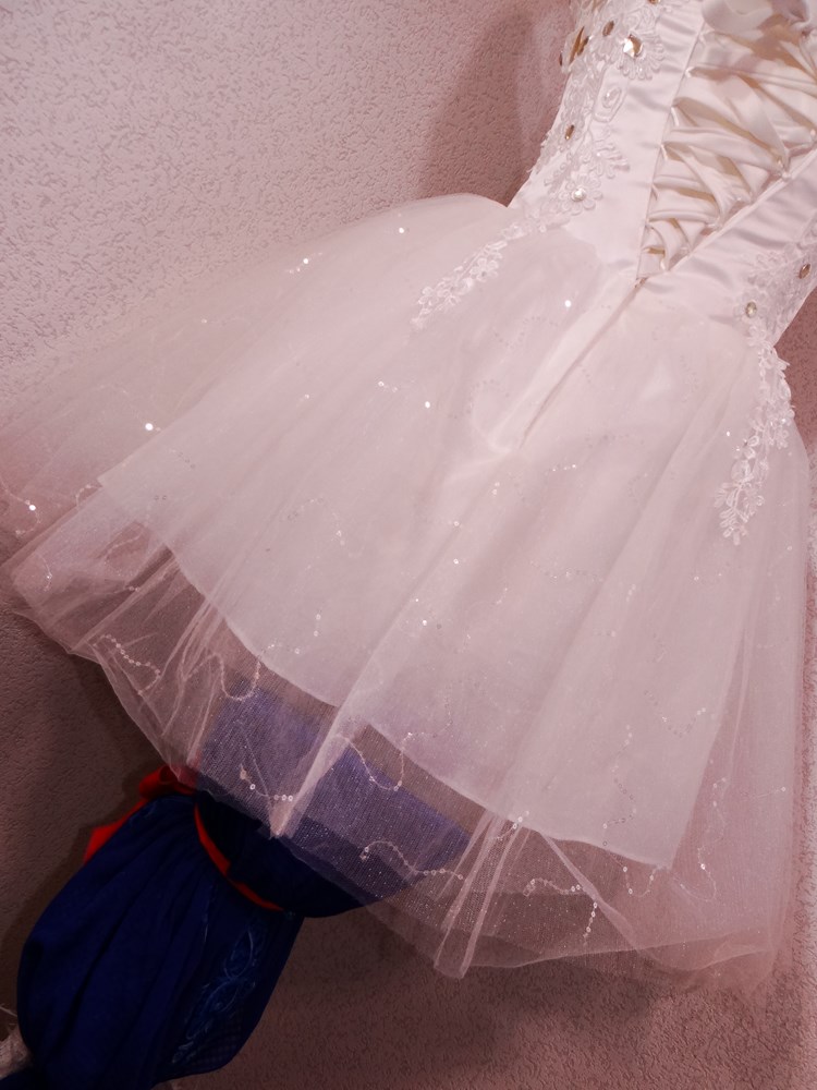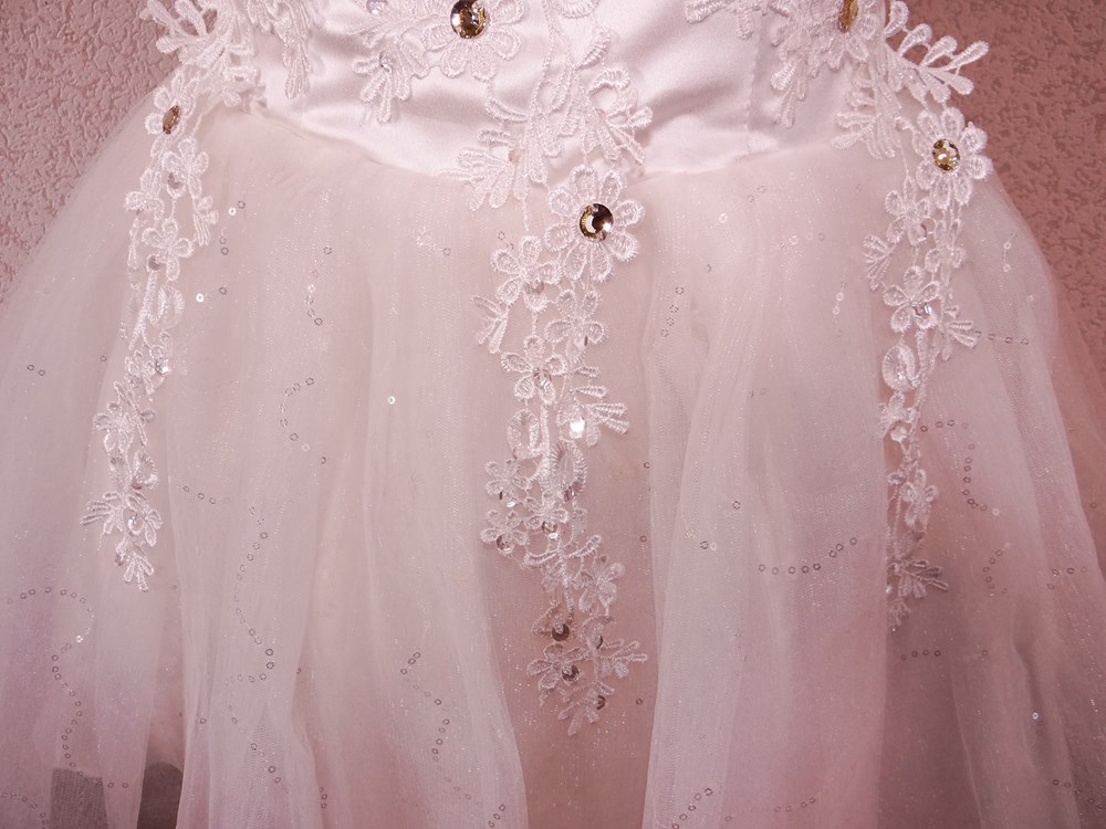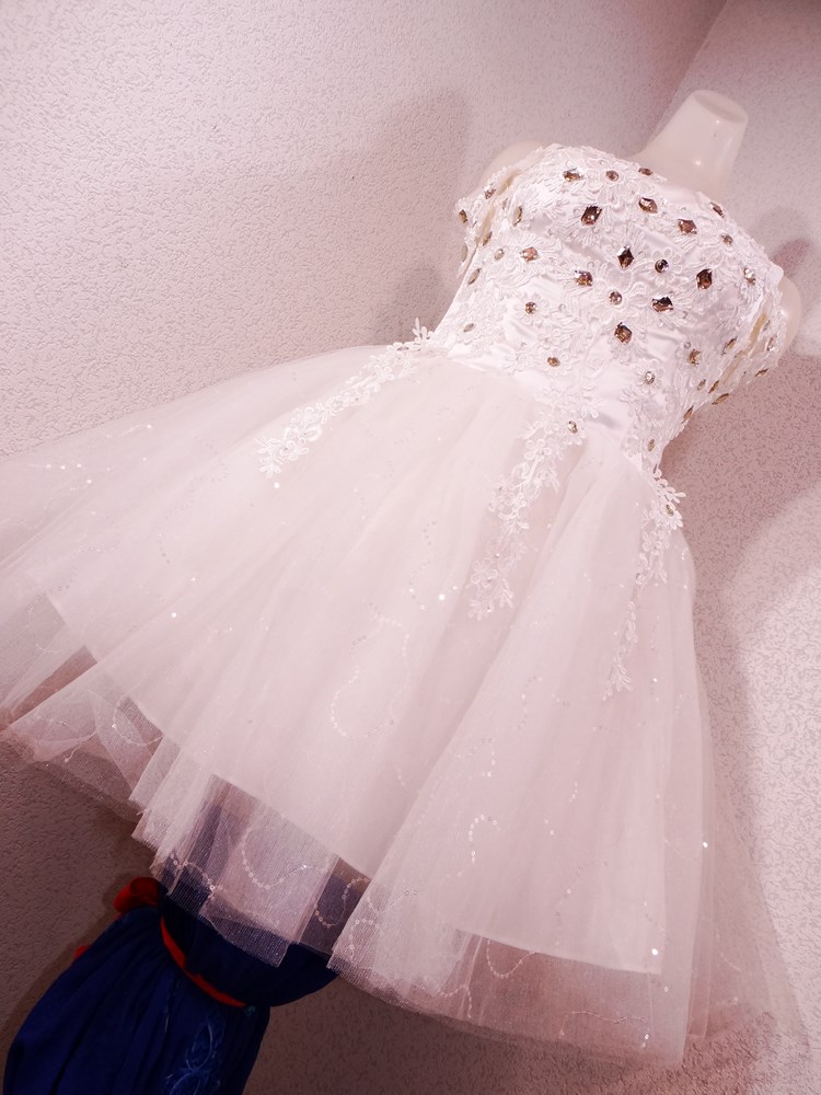 (オーダーメイド12万円ドレス:ボリュームの有るスカート部は5重層:アンダー下着と白パンストセット:使用者年齢帯:20代前半:関西のアイドル活動でご使用された再生品です。)