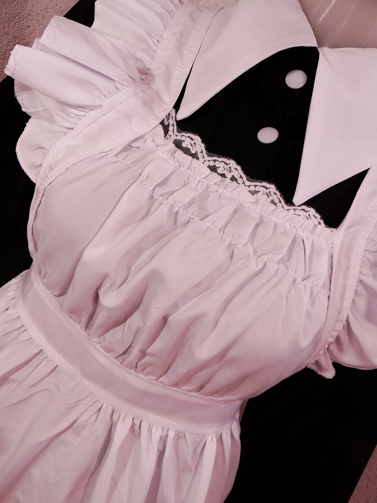 (女子大生モデルが撮影会でご使用された可愛いメイドドレスフルセット:使用者年齢帯:20代前半ガールズがご使用された再生品です。)