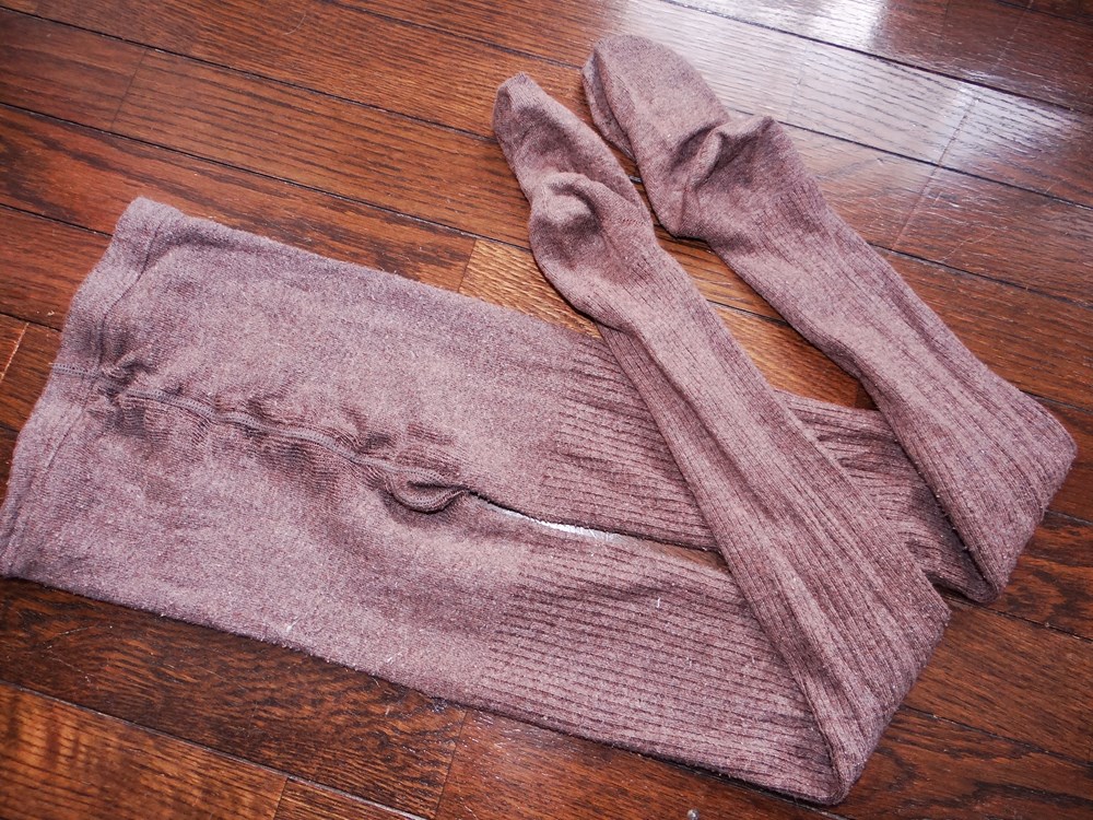 (リアルランジェリー:厚手のタイツ:使用者年齢帯:10代後半高校ガールズが5年近く、冬は日常的に使い込まれた再生品です。)